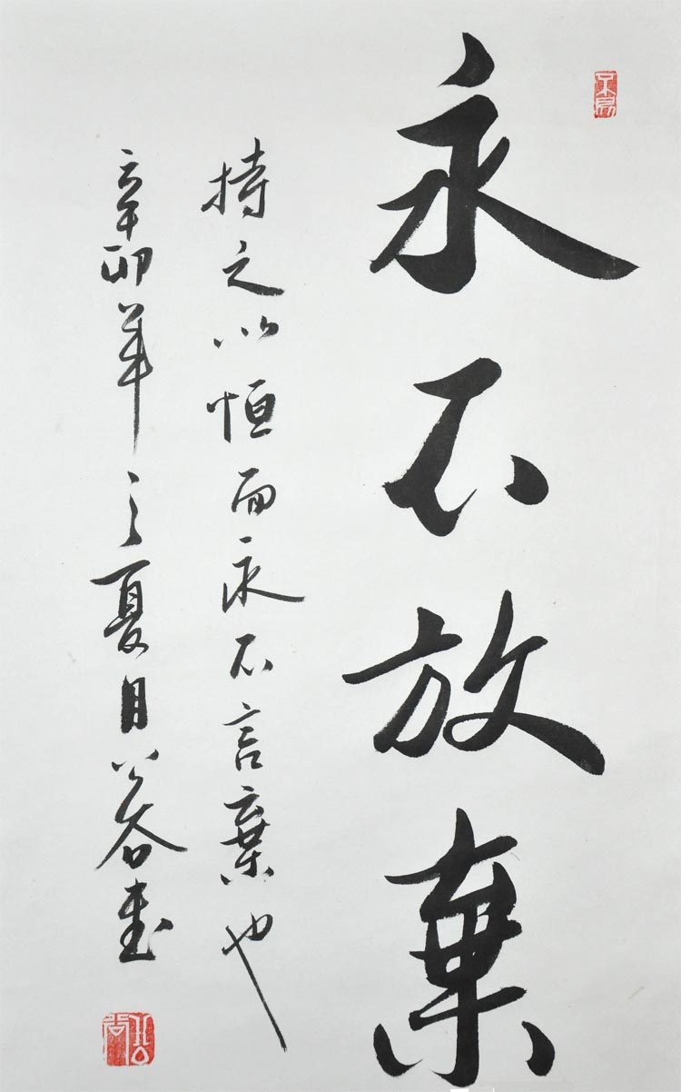 【永不放弃】行书 条幅 书法作品 已装裱卷轴 励志 艺术品装饰品
