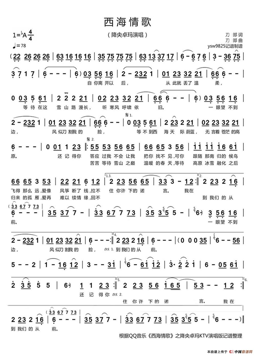 西海情歌简谱-刀郎-这是一个流传在西海的爱情故事1