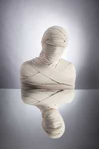 逃避日常的日常概念.埃及木乃伊裹着绷带的男人照片