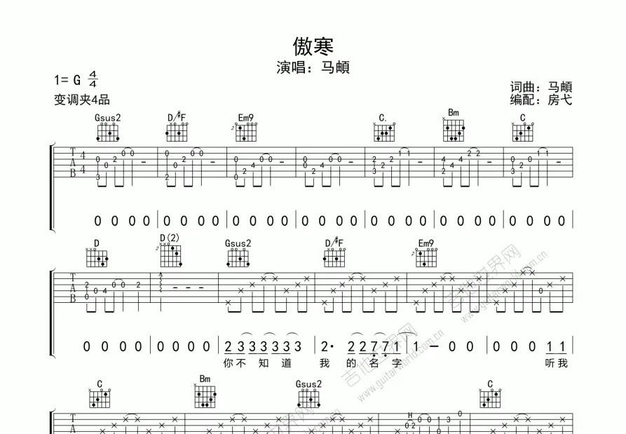 傲寒吉他谱图片谱高清版马頔傲寒六线谱吉他谱