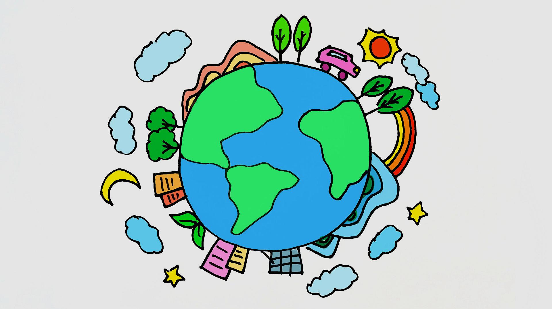 保护地球主题简笔画,关爱我们的家园,来涂上漂亮的颜色