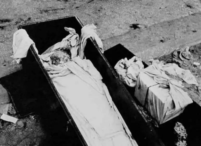 1949年杨虎城遗体挖掘的现场当时杨将军遗体已经高度腐烂