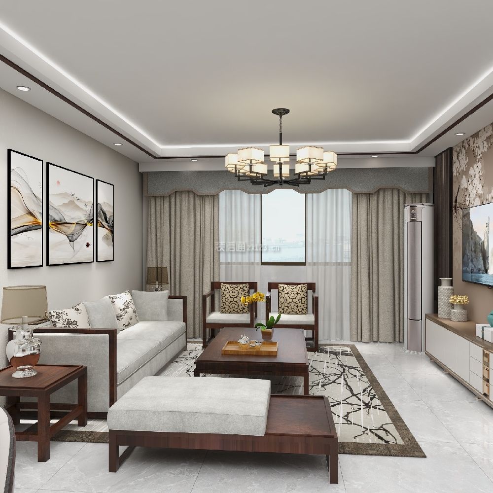 新中式客厅地砖效果图 新中式客厅瓷砖装修效果图