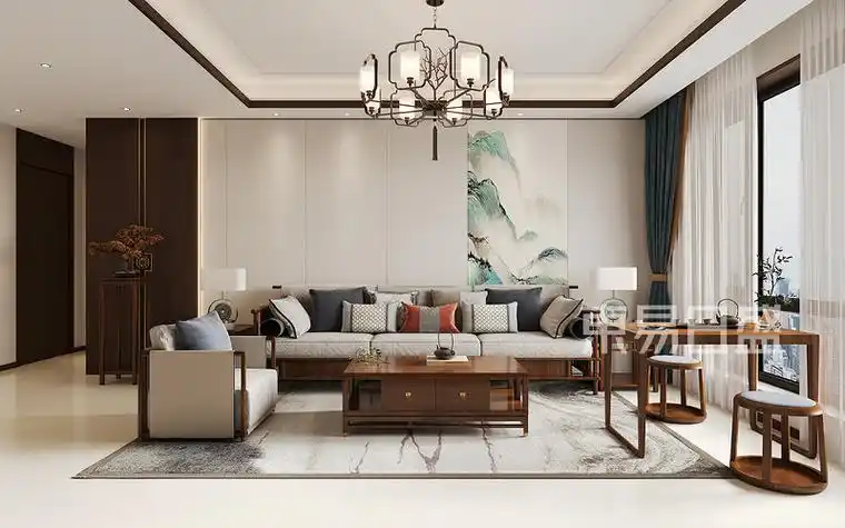 新中式风格别墅装修,抒写东方情韵 客厅采用无主灯设计,在造型不受