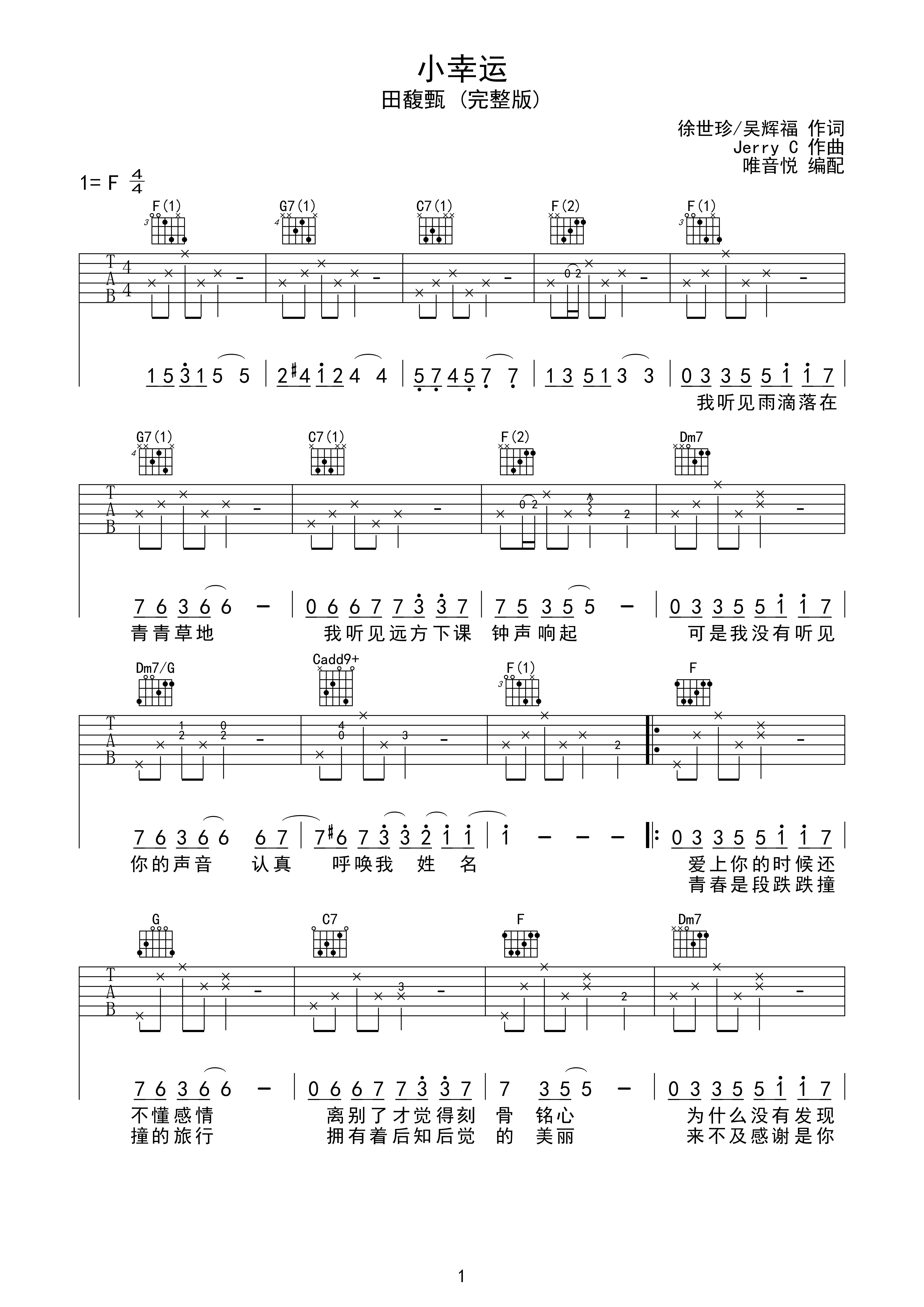 小幸运吉他谱-弹唱谱-f调-虫虫吉他