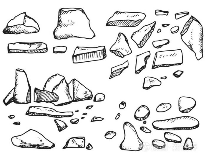 石头鹅卵石片断的一套故事的向量速写图标查出插画-正版商用图片08