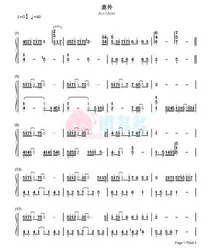 叶炫清,陈雪燃《意外》钢琴双手简谱3