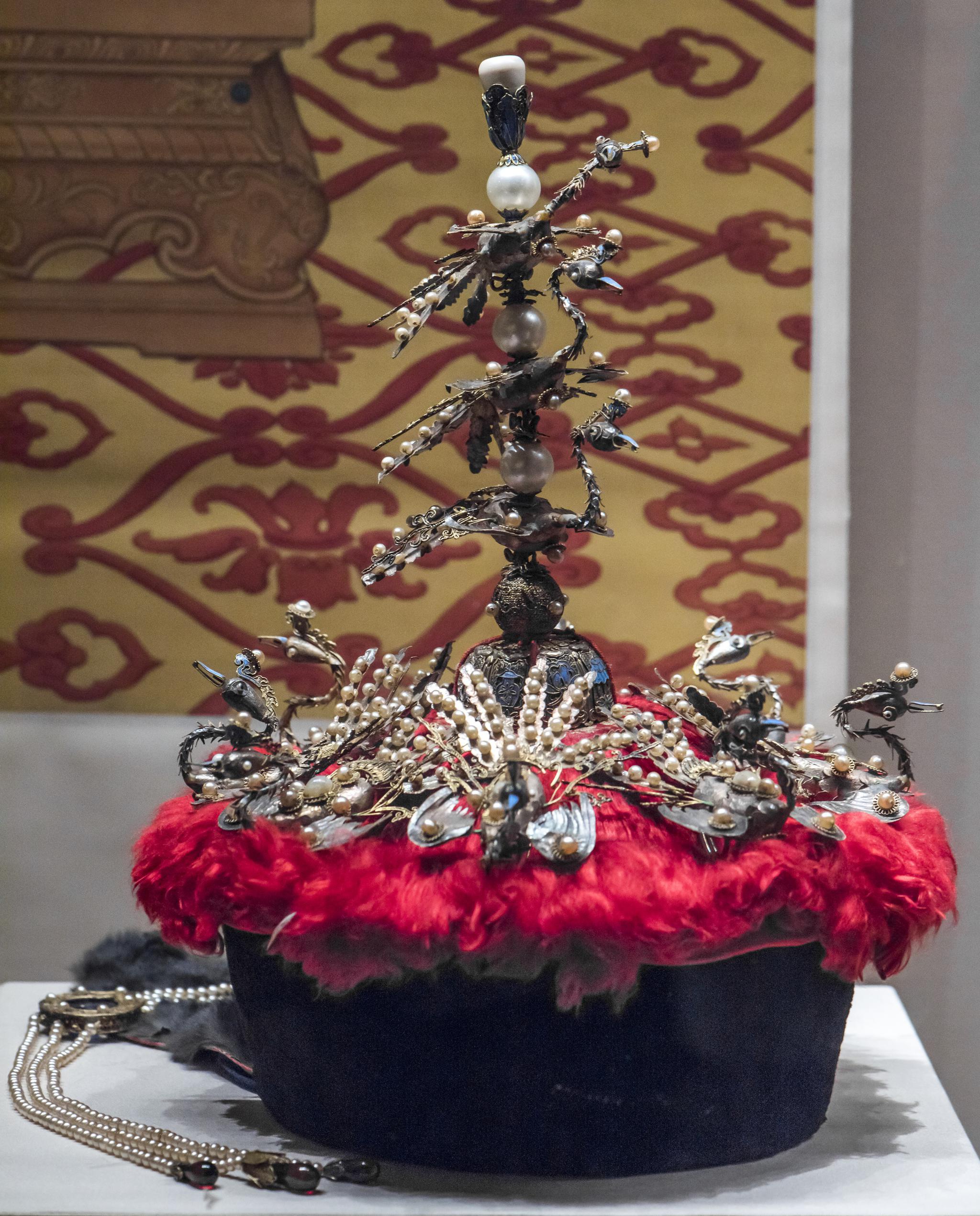 67点翠嵌珠后妃朝冠,清代,故宫博物院藏67黑狐皮端罩,清嘉庆,故宫