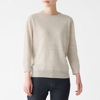 无印良品muji女式法国亚麻圆领针织衫bac71a0s米色s