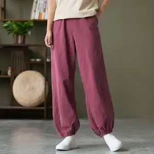 2019秋季新款棉麻提花灯笼裤松紧九分休闲裤女长裤四色一件代发