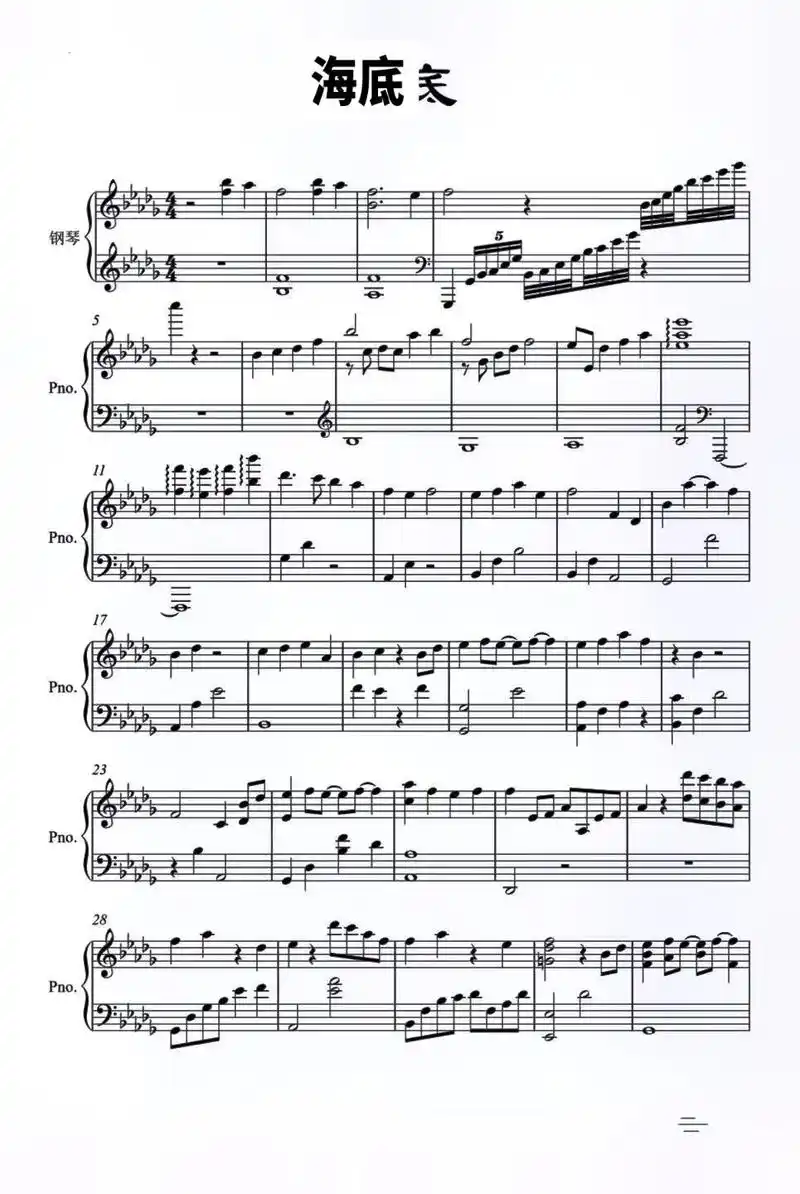 钢琴谱海底