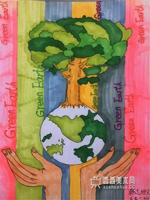 世界环境日主题创意画 我们只有一个地球,一定要爱护环境减少污 - 抖