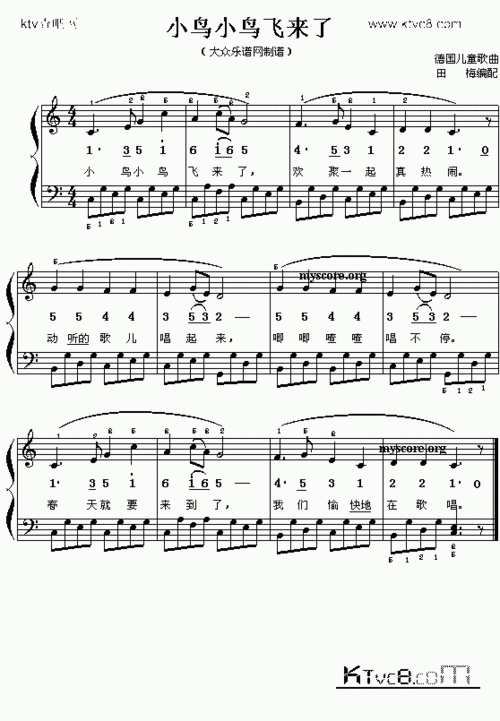 《小鸟小鸟飞来了,钢琴谱》带指法,德国儿歌(五线谱 钢琴曲 指法)-弹