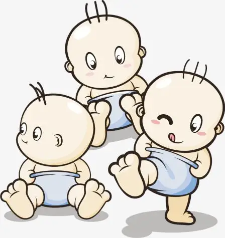 手绘卡通三个小婴儿宝宝排排坐免抠元素