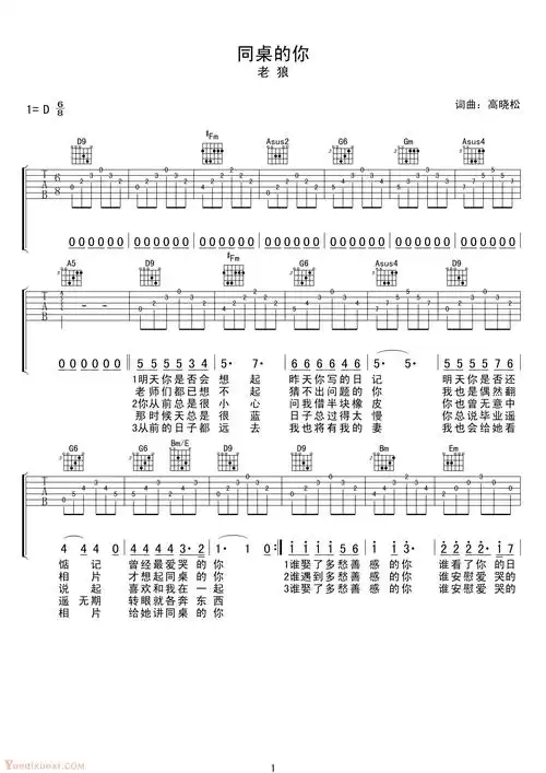 新手入门吉他谱 老狼同桌的你吉他谱简单版