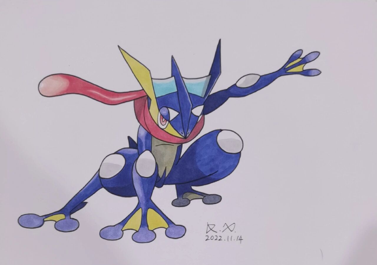 宝可梦甲贺忍蛙马克笔上色 宝可梦甲贺忍蛙马克笔上色完成了多多指教