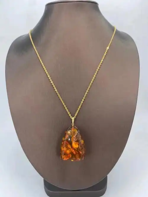 天然琥珀俄料花珀吊坠一枚配链子琥珀内含花瓣漂亮如图品相如图规矩