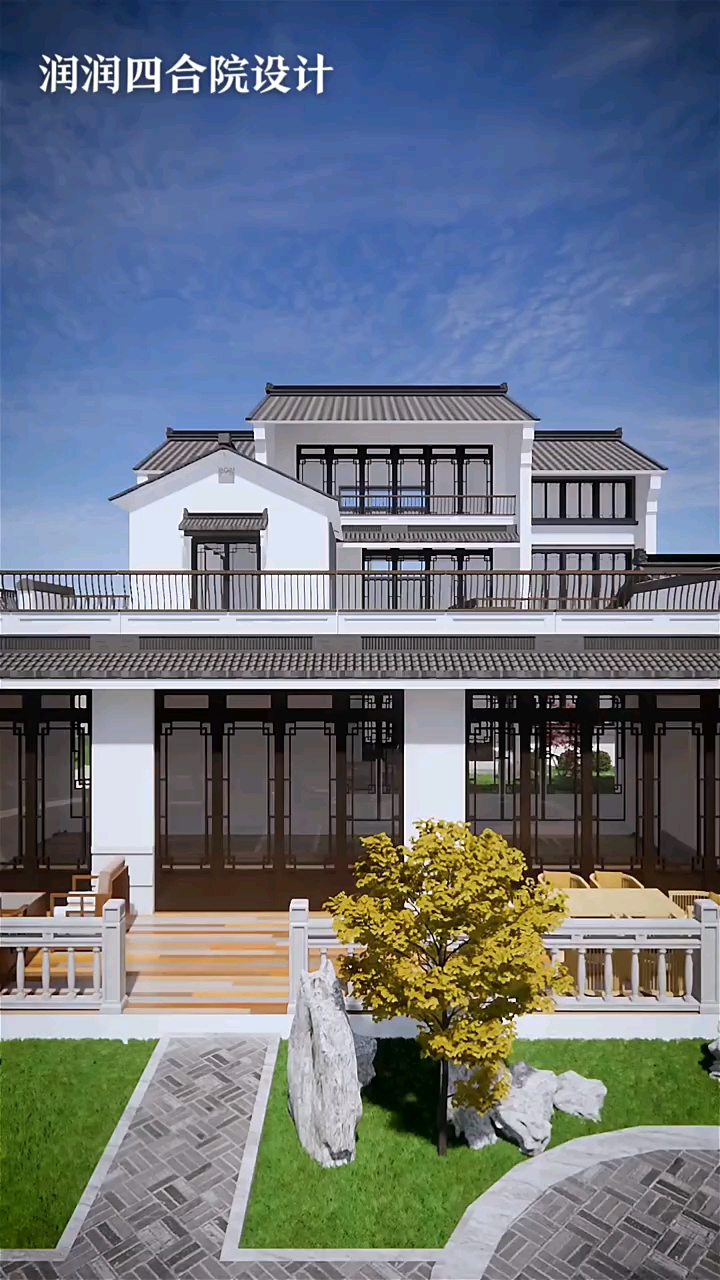 陈叔家的苏式三合院,仿徽派设计,简约不张扬,农村自建的好户型_别墅