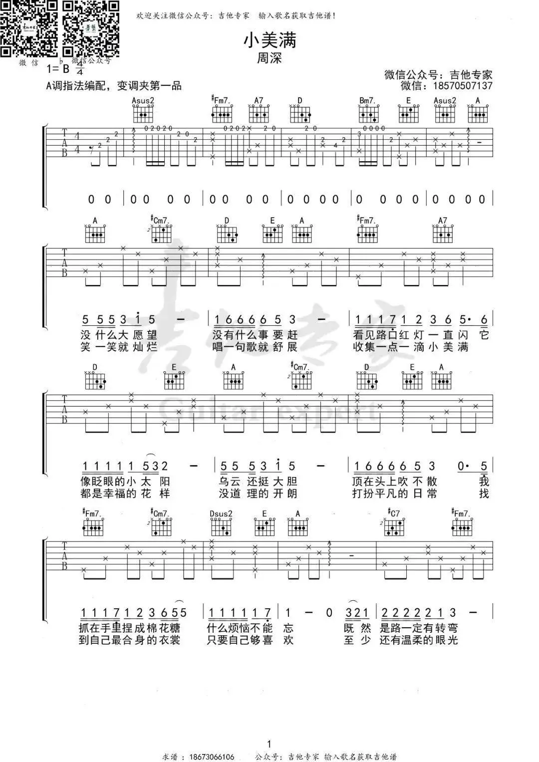 小美满 a调吉他谱 | 周深_漂亮_图片_阳光