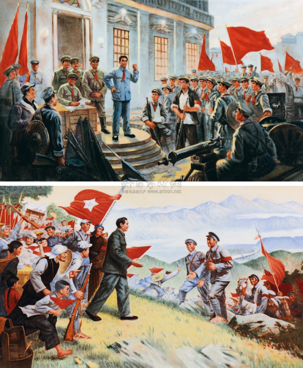 0271 现代 粉彩(南昌起义)(井冈山会师)瓷板 (一对)