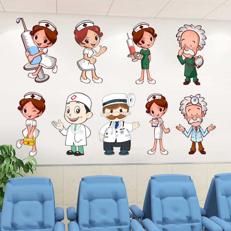 医院诊所护士站台定制文化背景墙贴卡通男医生小护士人物形象贴纸