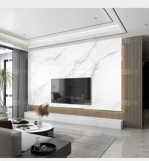 木格栅岩板悬空电视背景墙2021年新款轻奢风瓷砖大理石电视机大板的