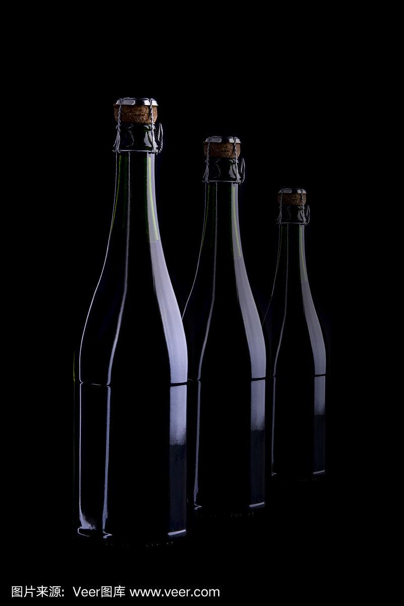 黑色哑玻璃酒瓶,黑色孤立图片下载