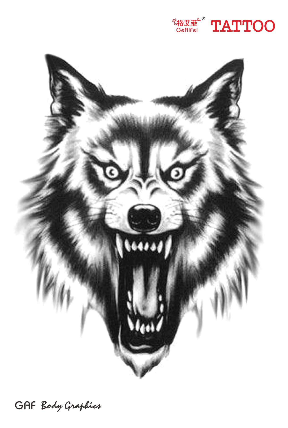 格艾菲纹身贴-灰狼头纹身贴 刺青贴纸 胸前狼头纹身 假纹身 防水
