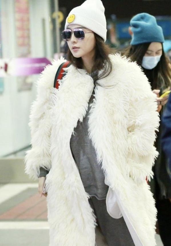 范冰冰穿白色毛绒大衣现身,皮草穿得贵气不俗气,39岁气质出众