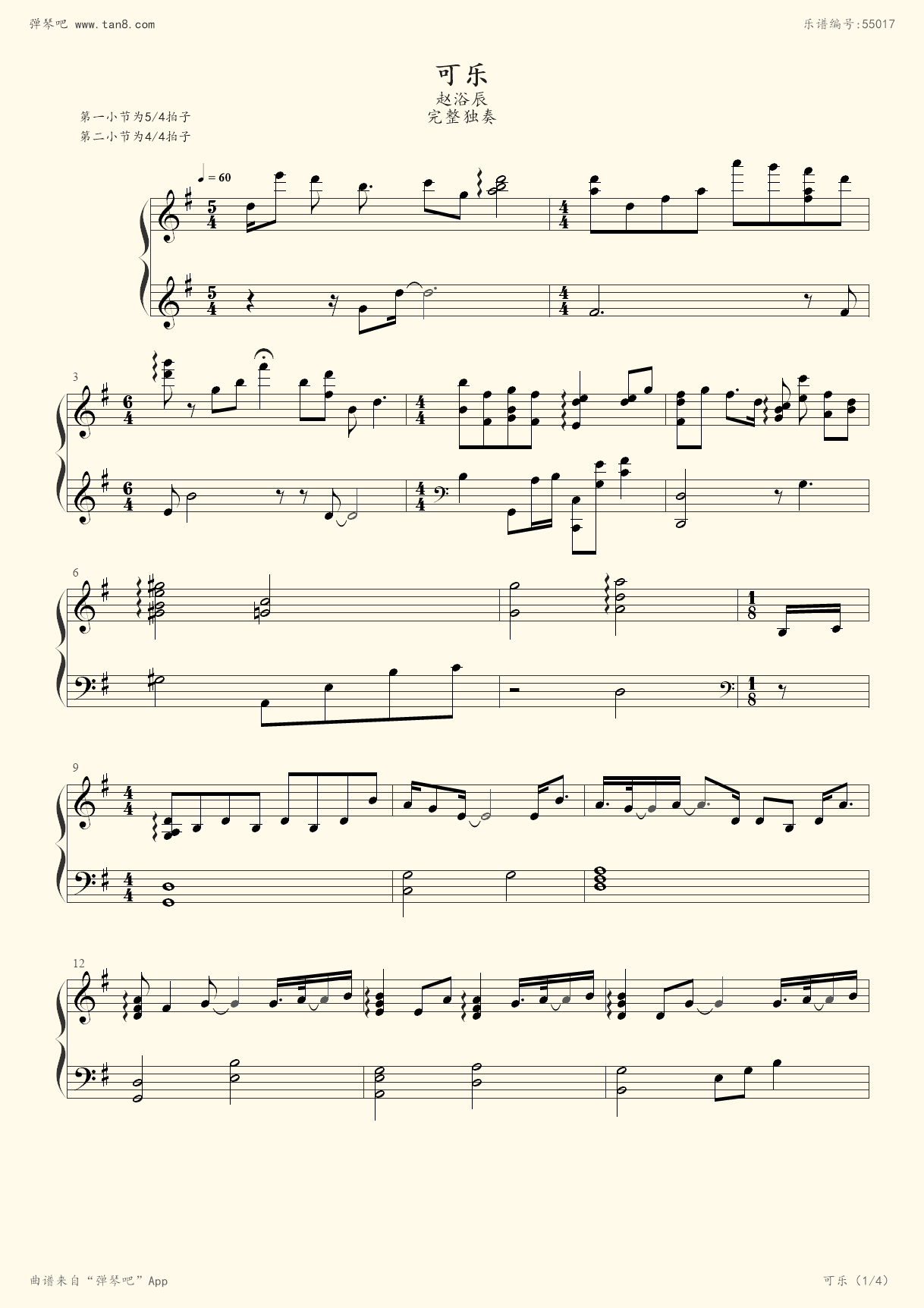 可乐钢琴谱