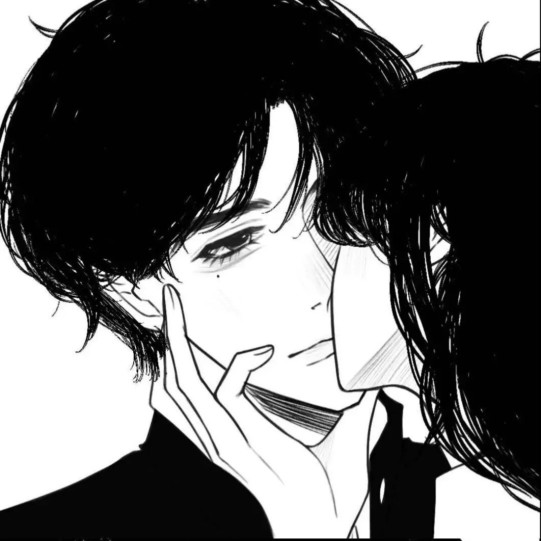 进来拿丧系 黑白简约漫画风动漫情侣头像