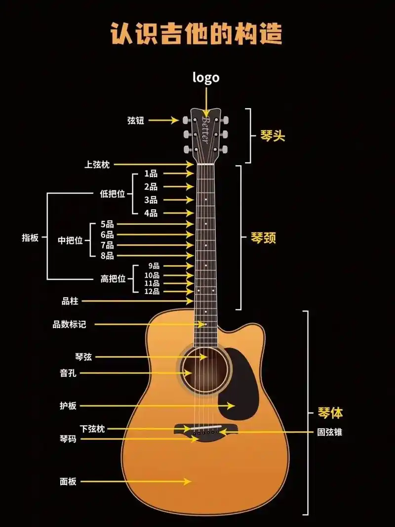 超级详细97民谣吉他各部位构造及含义图解 哈喽!