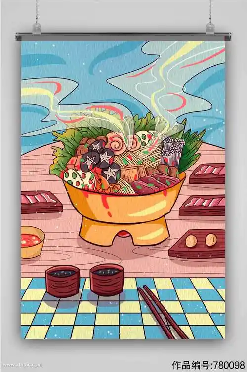 美食创意卡通手绘抽象插画海报