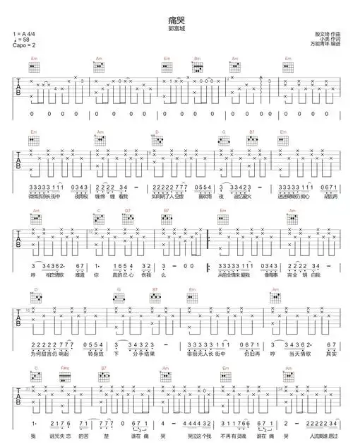 痛哭吉他谱_郭富城_g调指法原版编配_吉他 a href=https://www.