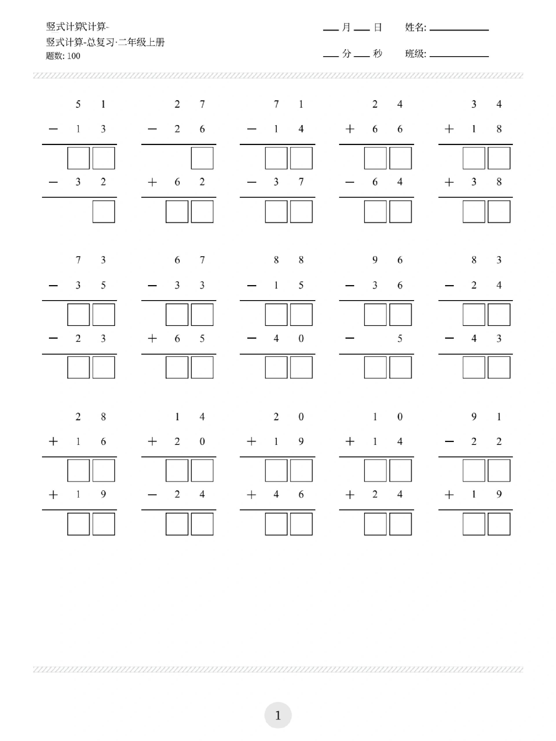 二年级竖式计算500题