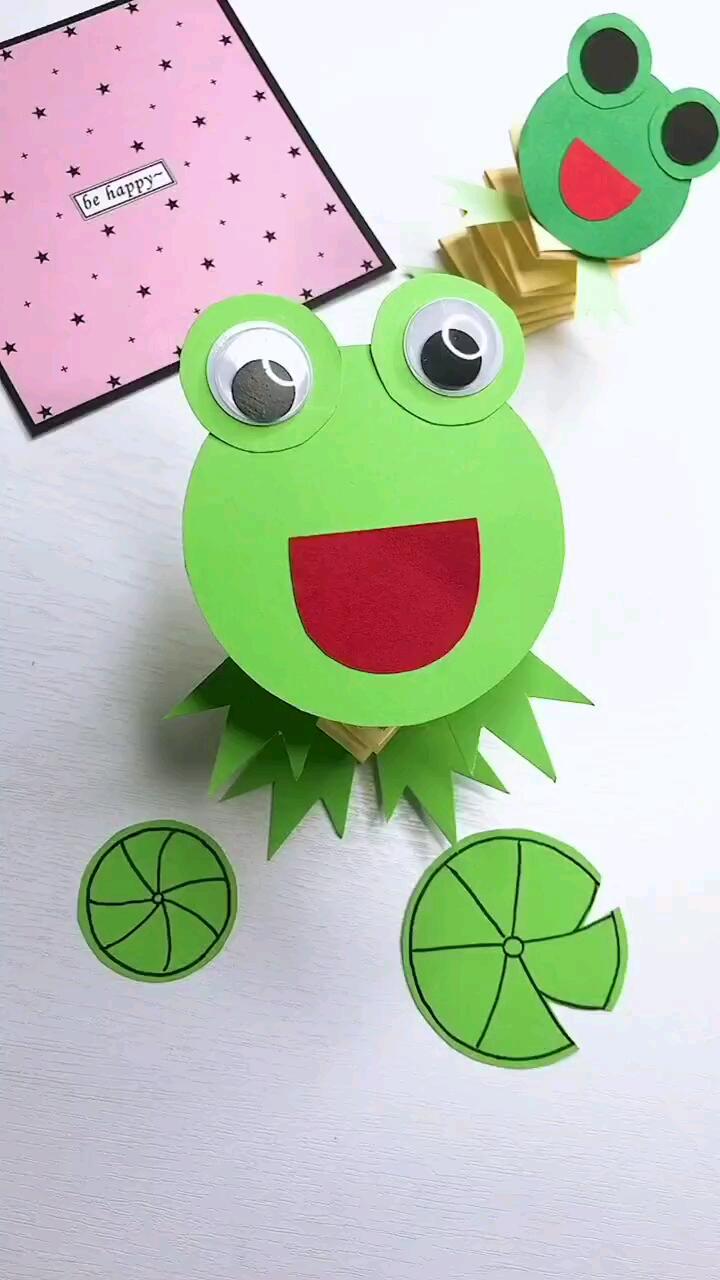 幼儿手工折纸弹簧青蛙,幼儿园很火