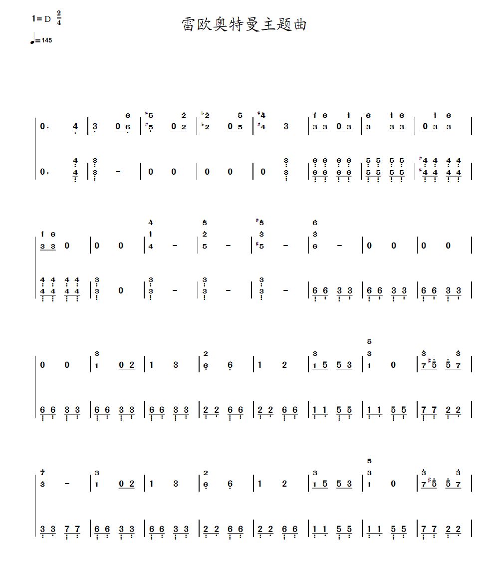 雷欧奥特曼的主题歌,要歌谱,123的那种