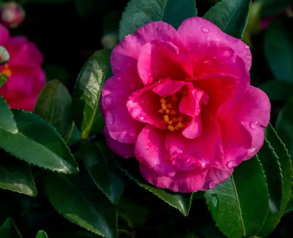 茶梅株形疏散,为乔木状灌木,叶形优美,极亮丽.