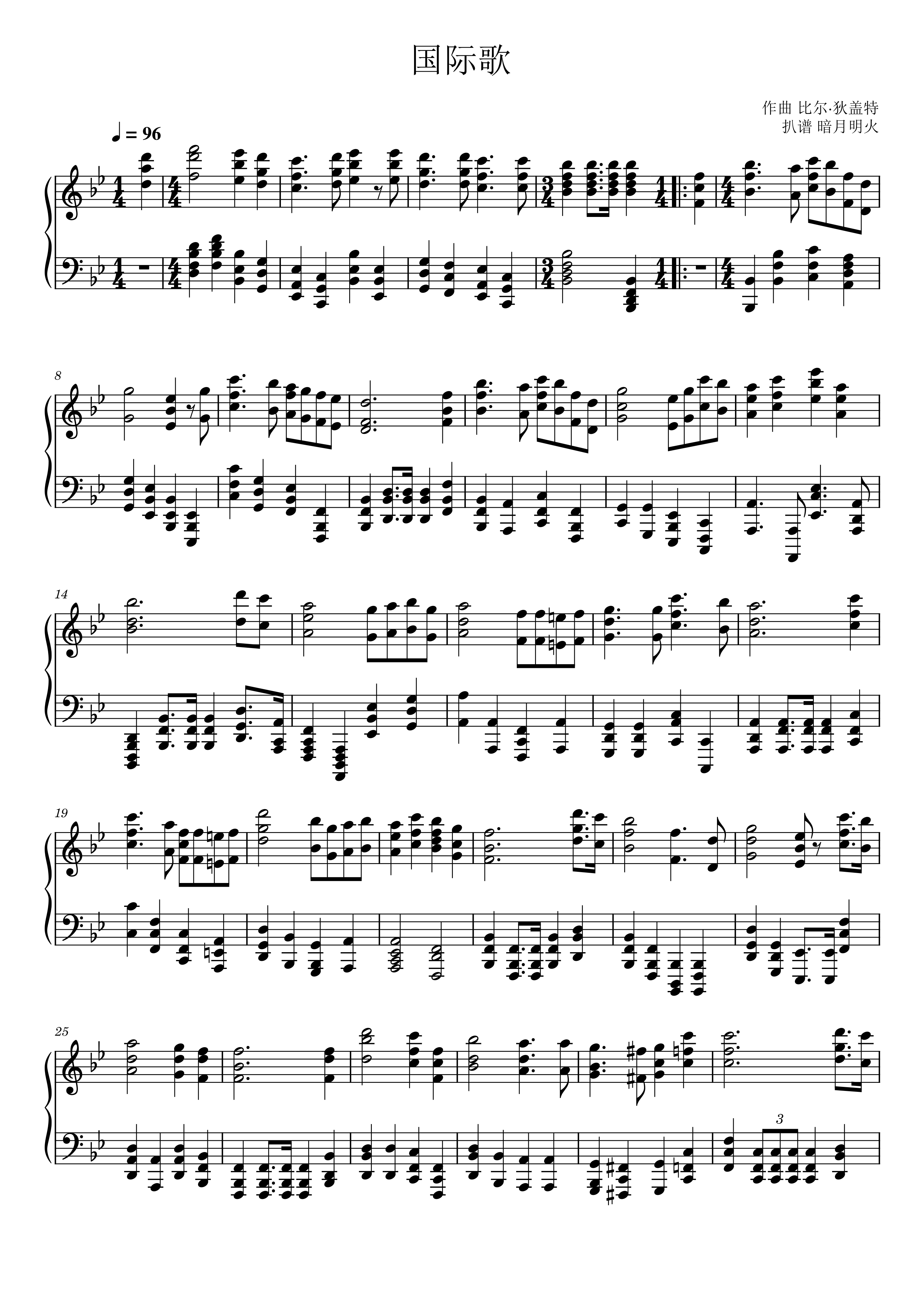 钢琴谱 - 国际歌