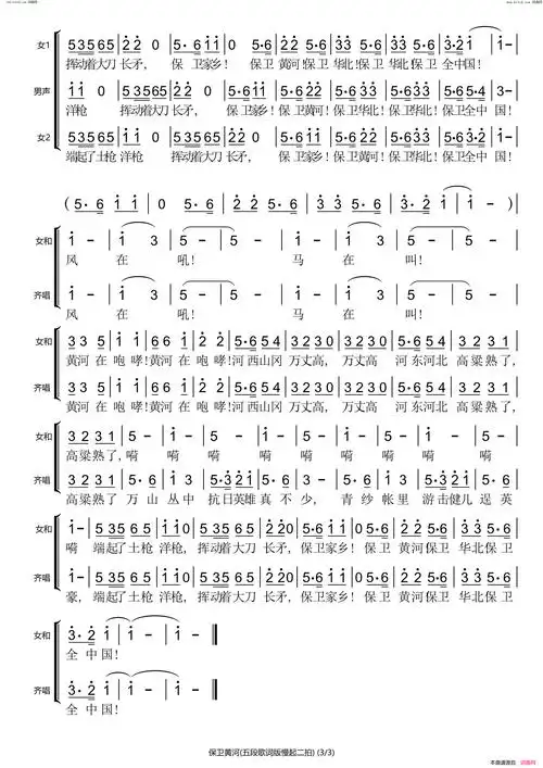 保卫黄河合唱谱保卫黄河合唱谱保卫黄河合唱谱