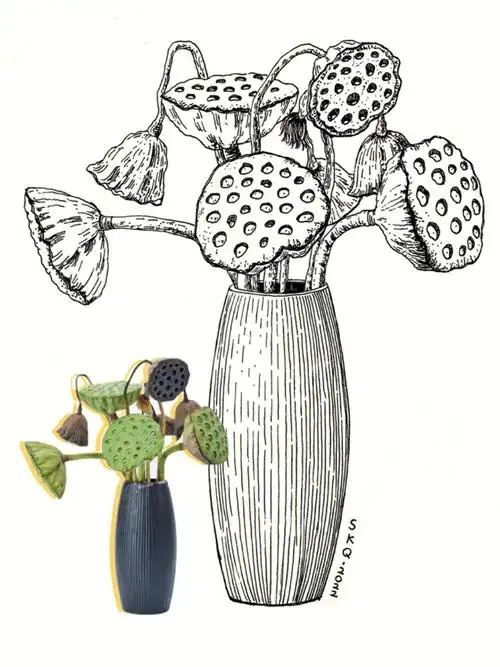 工笔画国画底稿小鸟莲蓬小品白描1#打印稿