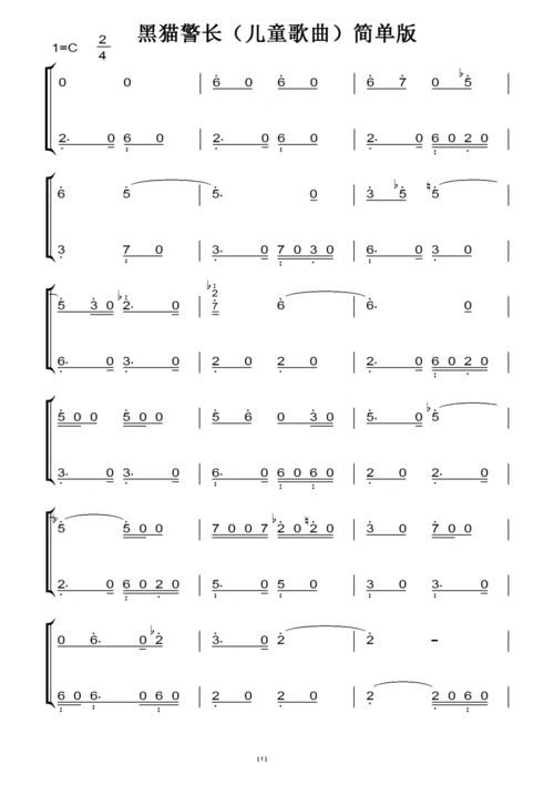 黑猫警长(儿童歌曲)简单版(原版)钢琴双手简谱 钢琴谱