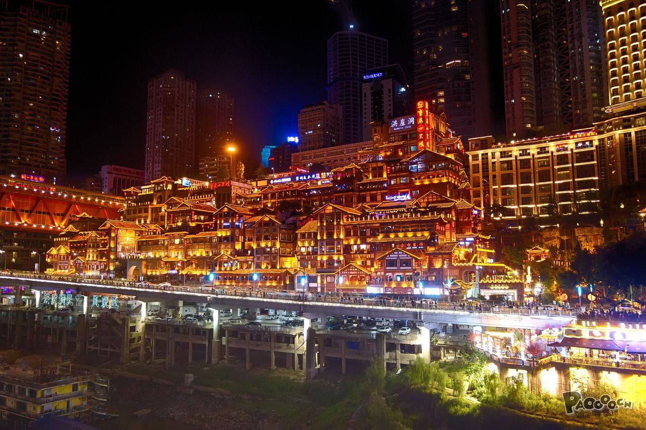 灯火璀璨不夜重庆,火树银花光耀山城.