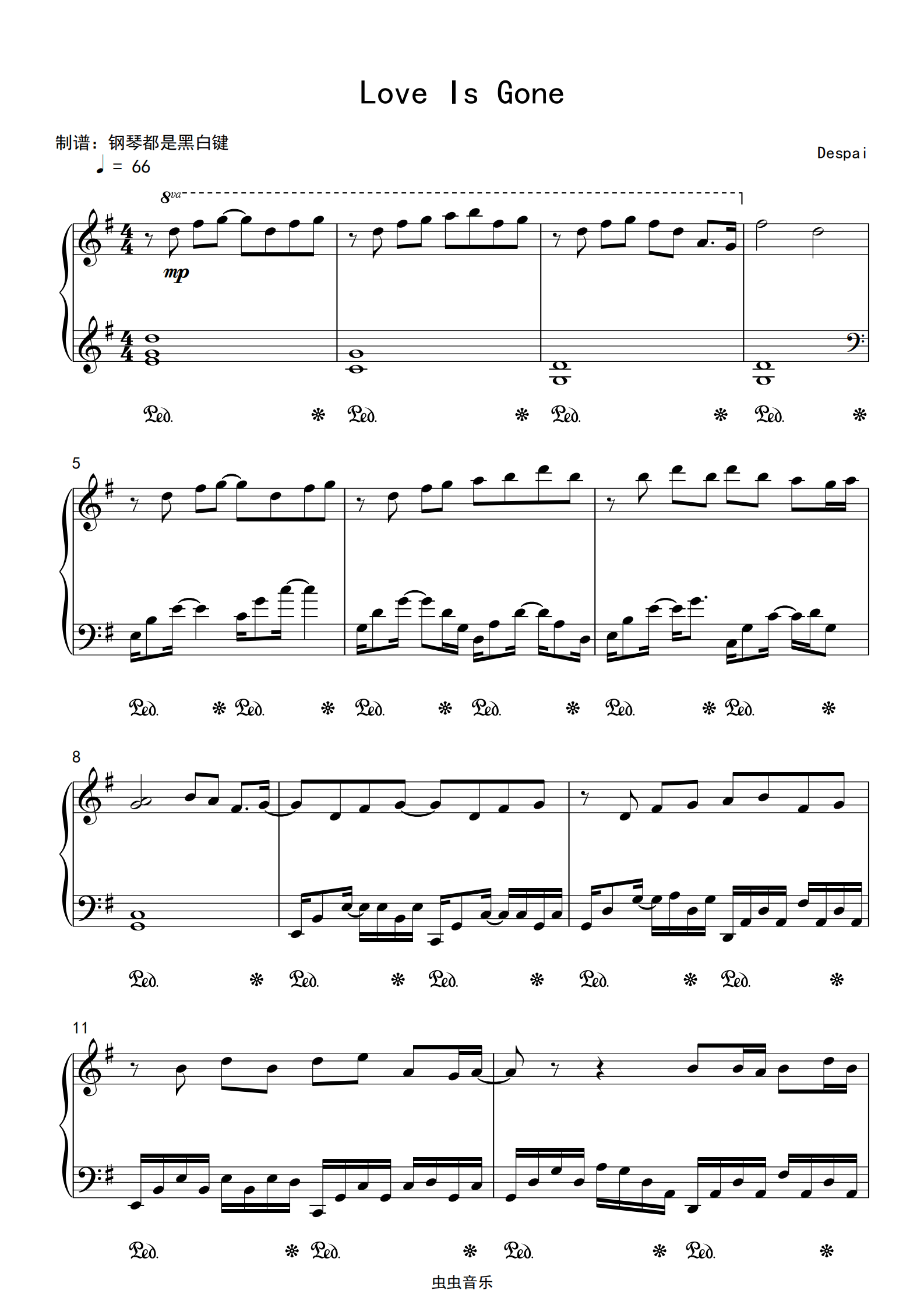 钢琴谱loveisgone