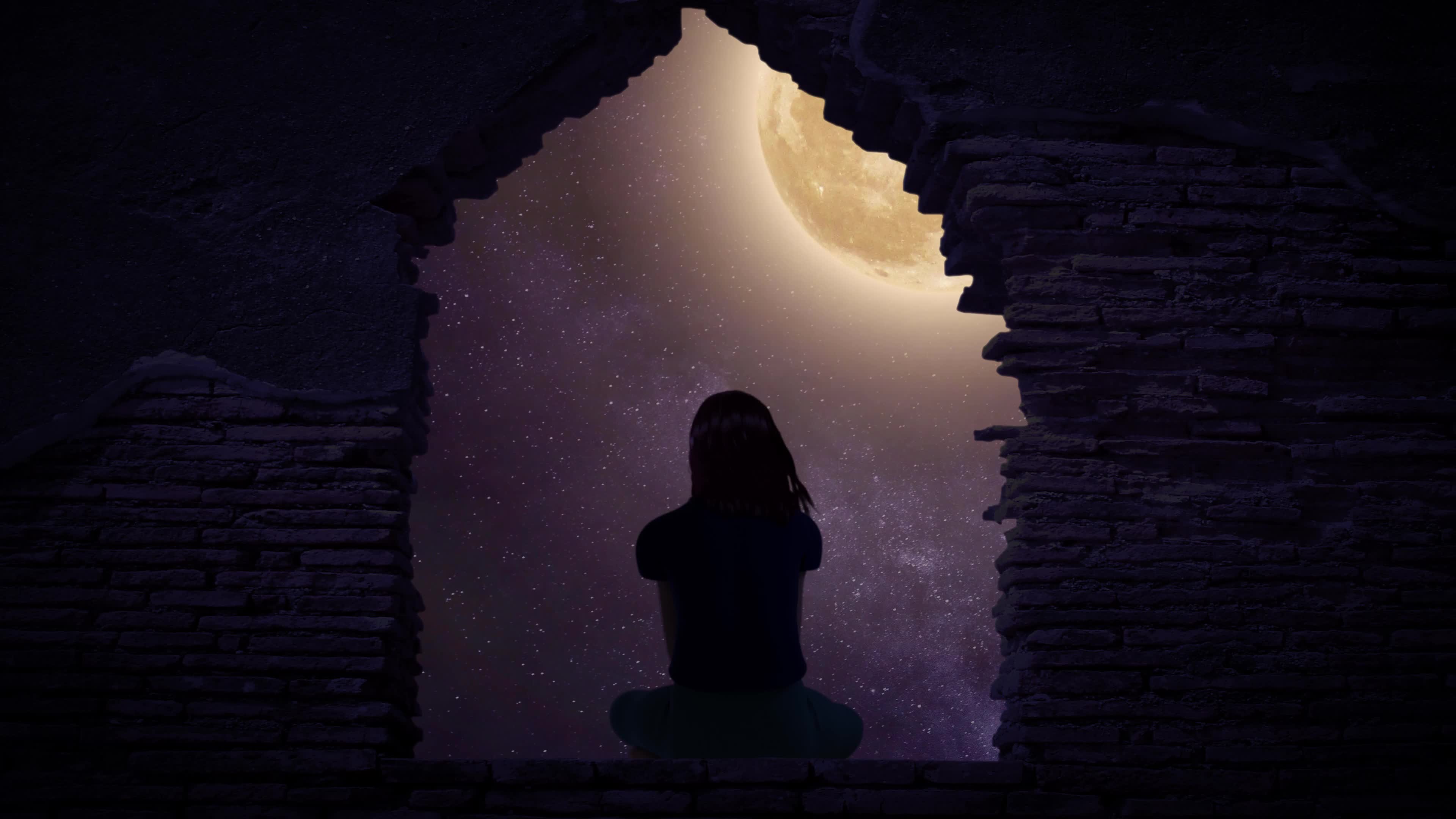孤独伤感美女背影剪影素材-livekong来悟空