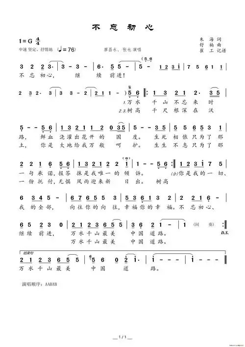 不忘初心 _小弩个人制谱园地_中国曲谱网