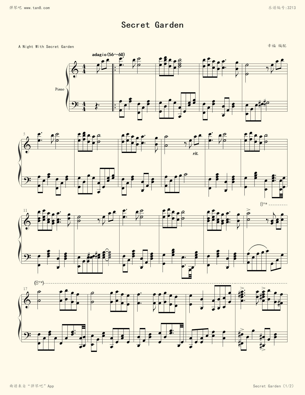 神秘花园钢琴曲谱,于斯课堂精心出品.