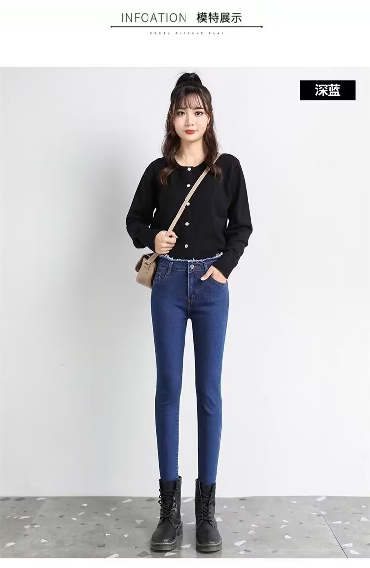 日系女牛仔裤潮流原宿时尚流行简约毛边修身弹力高腰百搭小脚长裤