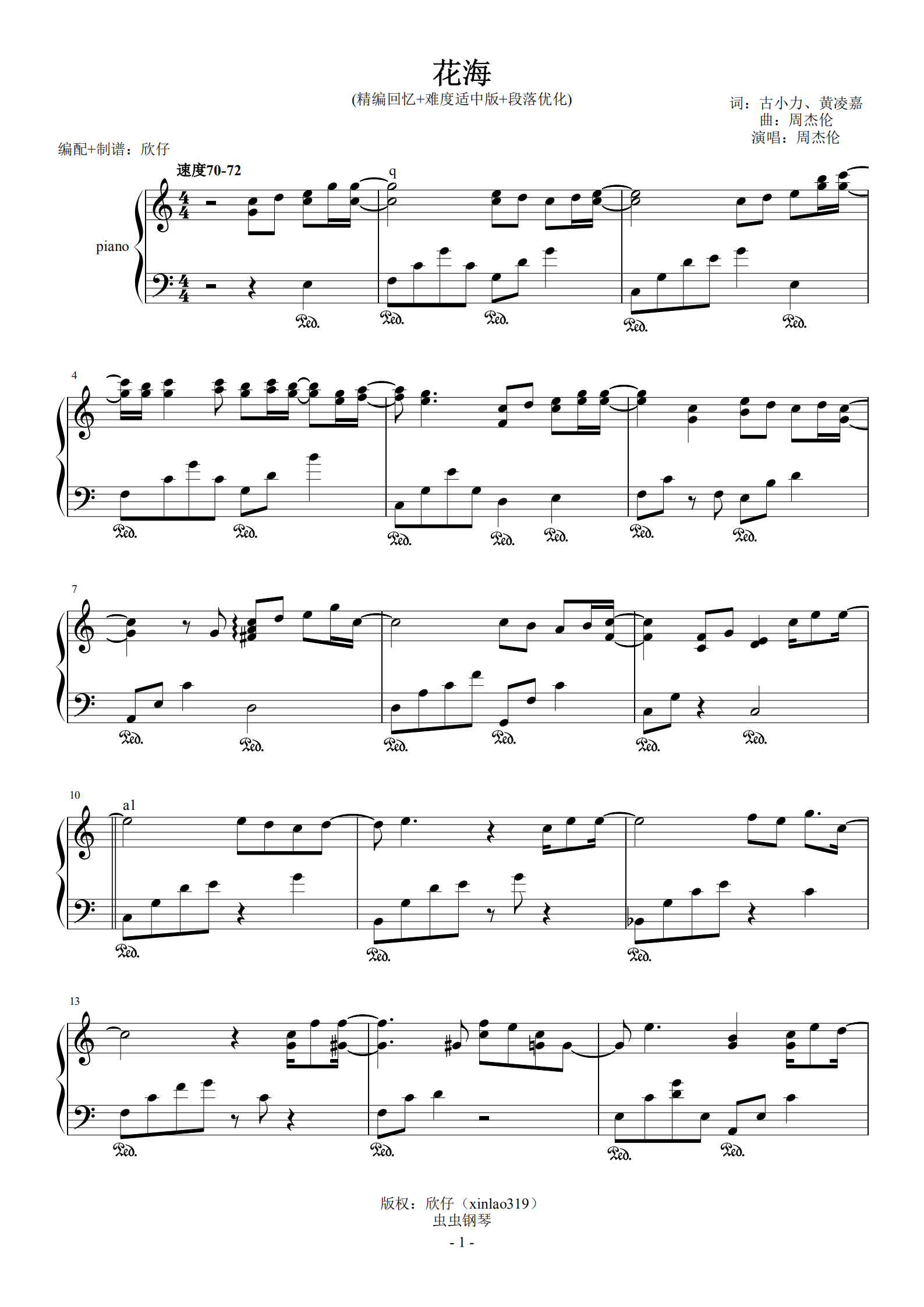 周杰伦 花海-超好听超好听唯美版【精品钢琴曲】钢琴谱-c调-虫虫钢琴