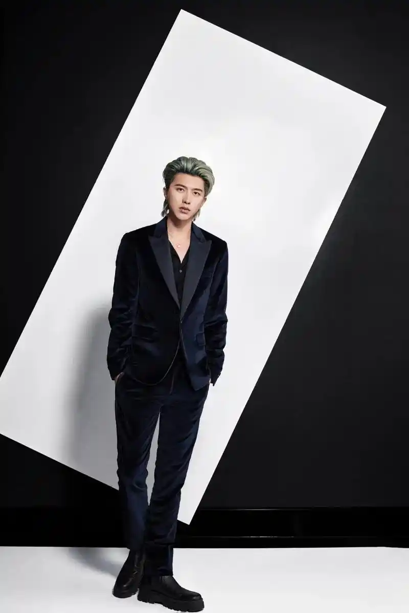 蔡徐坤银发背头狼尾##蔡徐坤深v银灰西装